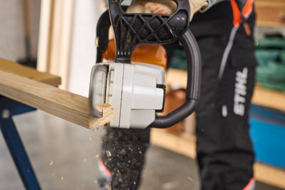 Kiirketipingutus ja STIHLi QuickStop Super ketipidur muudavad kasutamise mugavaks ja turvaliseks. Niipea kui kasutaja laseb lahti tagumisest käepidemest, seiskub kett täielikult sekundi murdosa jooksul, mis tagab enam ohutust.