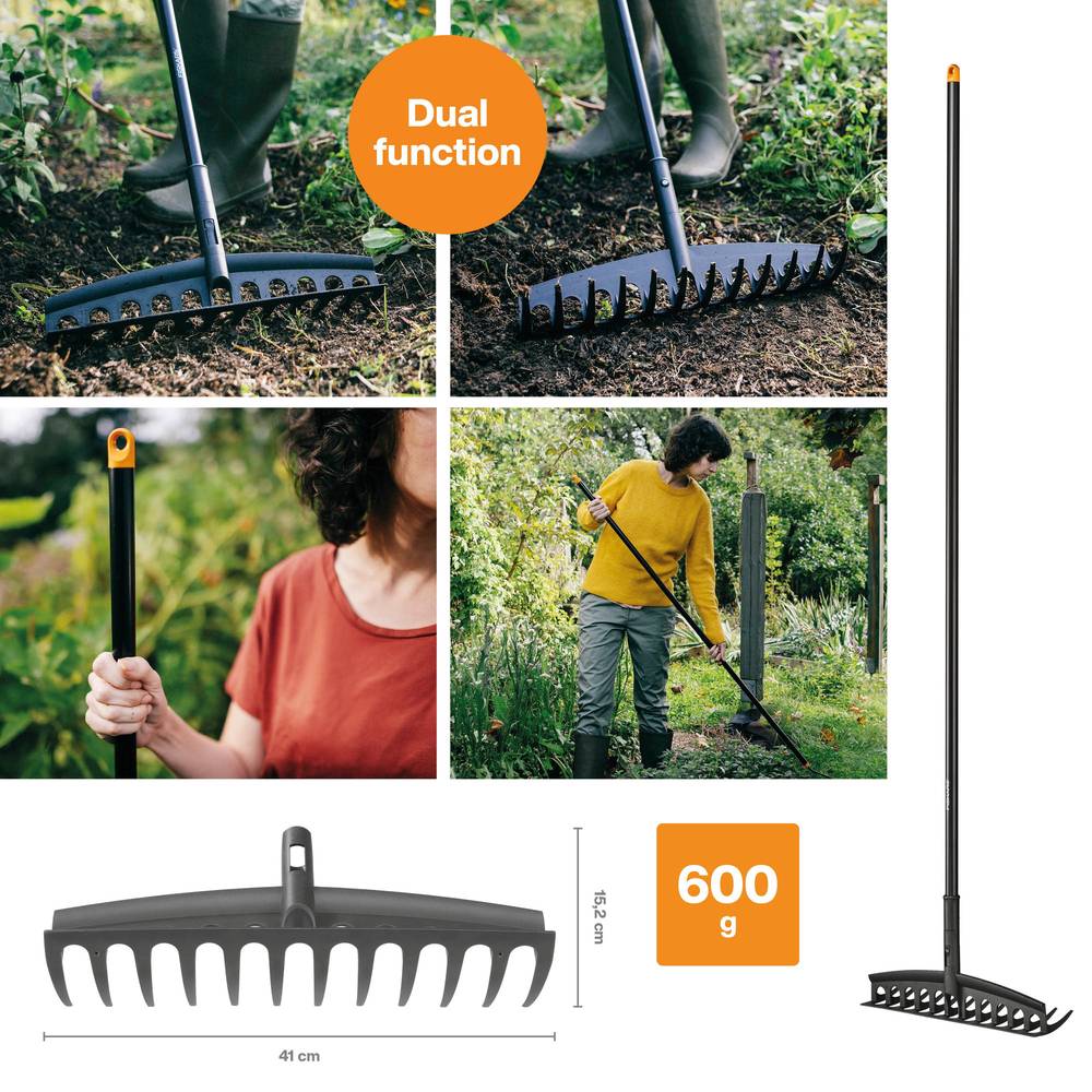 Fiskars Solid™ universaalne lreha on ideaalne tööriist nii pika, lahtise muru või okste riisumiseks kui ka lillepeenarde kobestamiseks ja köögiviljapeenarde tasandamiseks. Vastupidav konstruktsioon ja tugevad piid muudavad töö lihtsaks ning tagavad suurepärase tulemuse. See mitmeotstarbeline tööriist on suurepärane täiendus Fiskars Solid™ sarjale, pakkudes tõhusat ja täpset lahendust igapäevaste aiatööde jaoks.